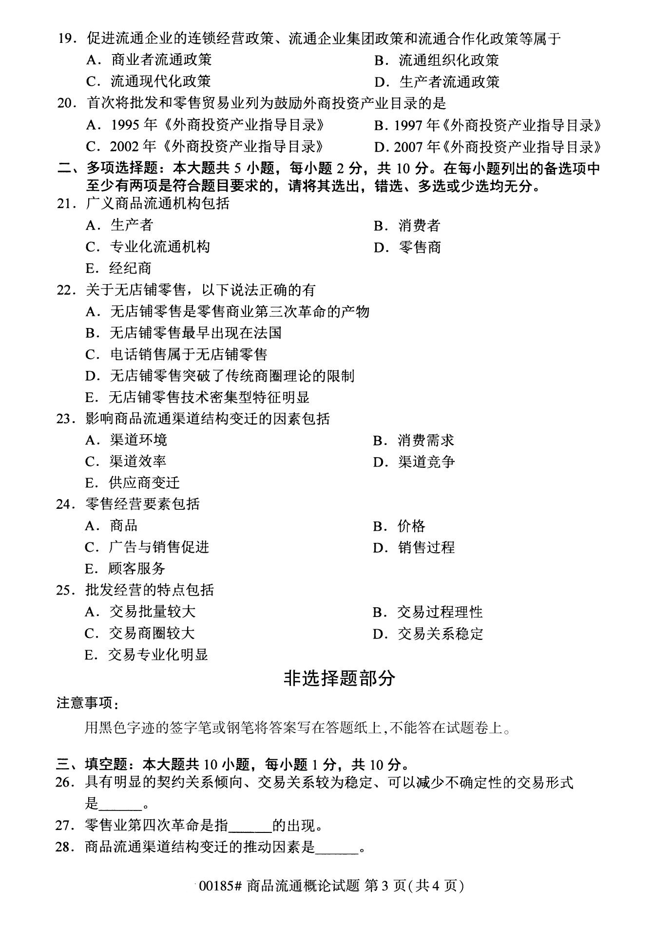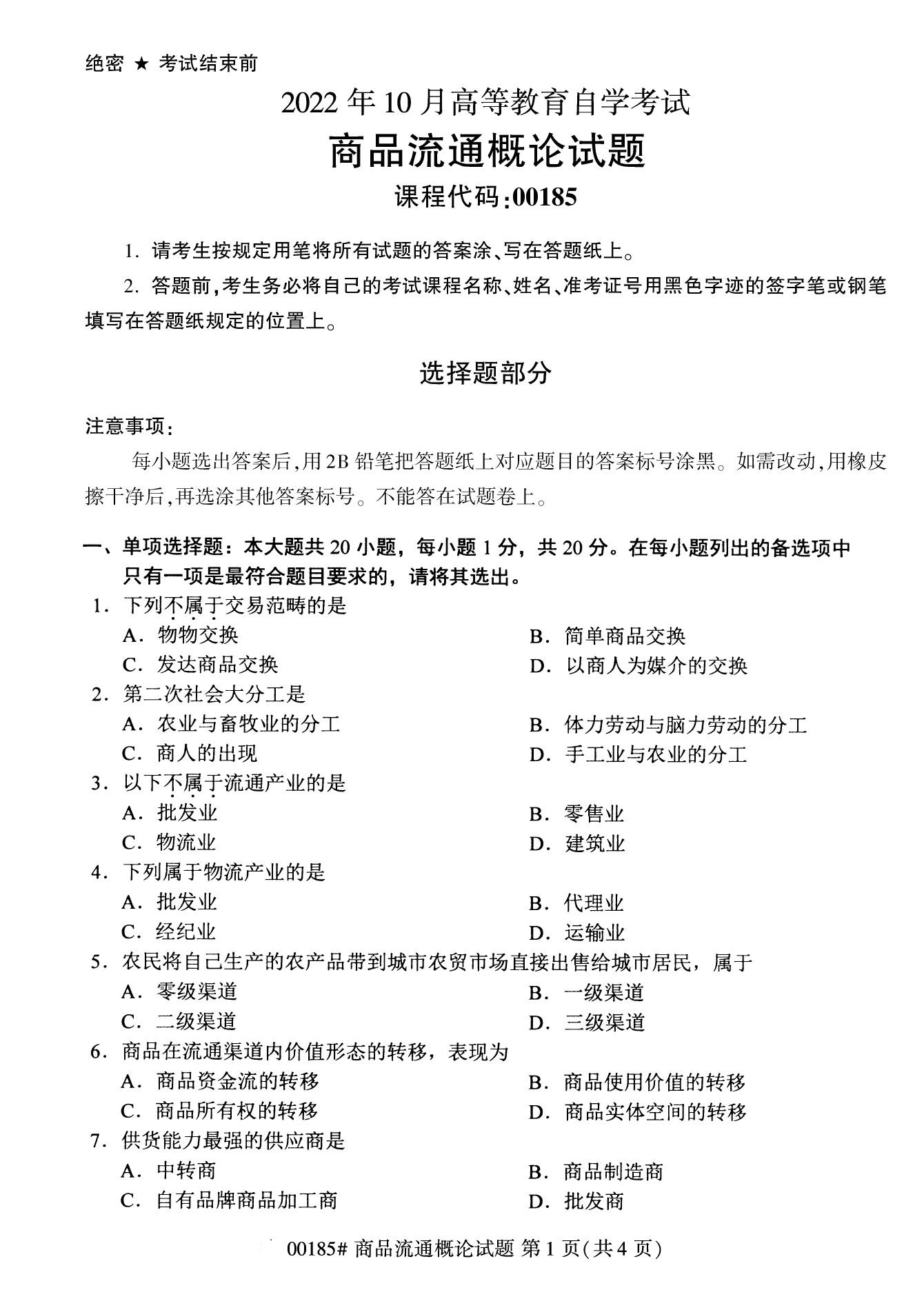 • 所在位置:浙江自考网 > 自考试卷 > 2022年10月浙江自考00185商品流通概论试题