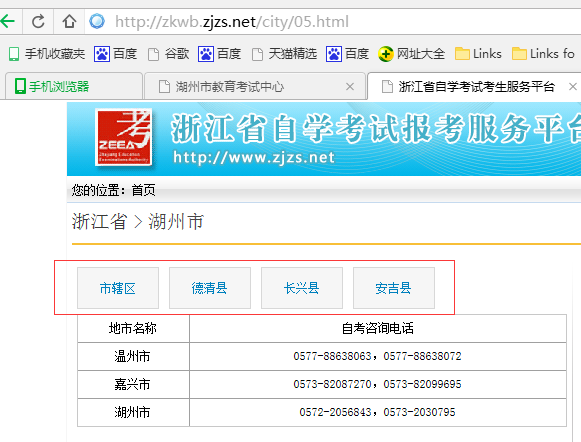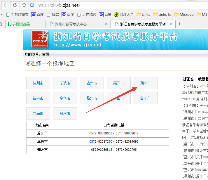 1. 点击“自学考试湖州市”,再点击所属辖区。