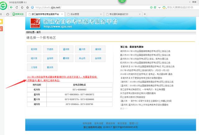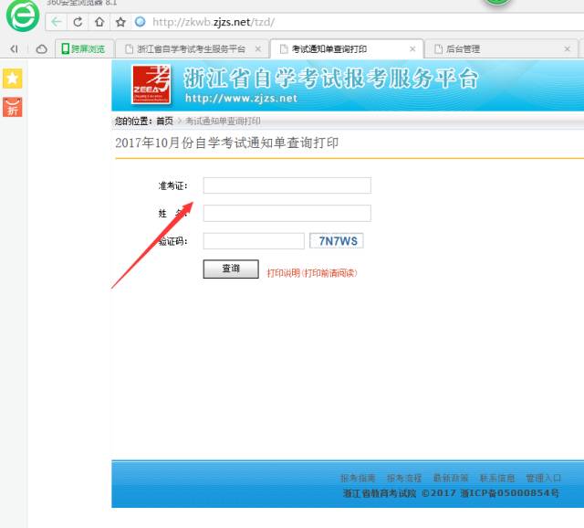 【湖州市】2017年10月自考准考证(考试通知单)打印流程和注意事项