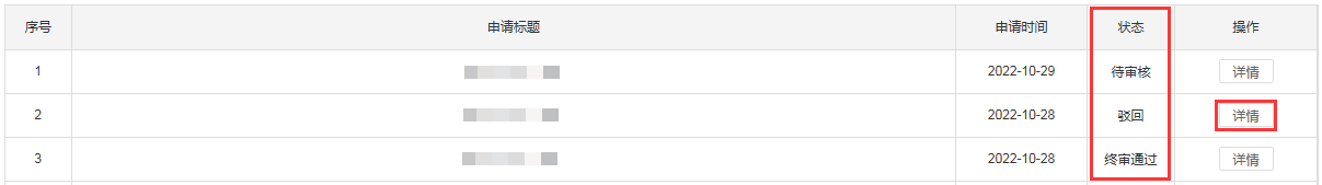 状态为“终审通过”的申请,成绩合并已经完成,考生可登录浙江省教育考试院自学考试信息网(zk.zjzs.net)查询成绩;状态为“驳回”的,可点击“详情”查看驳回的原因;其他状态则为尚在审核中。