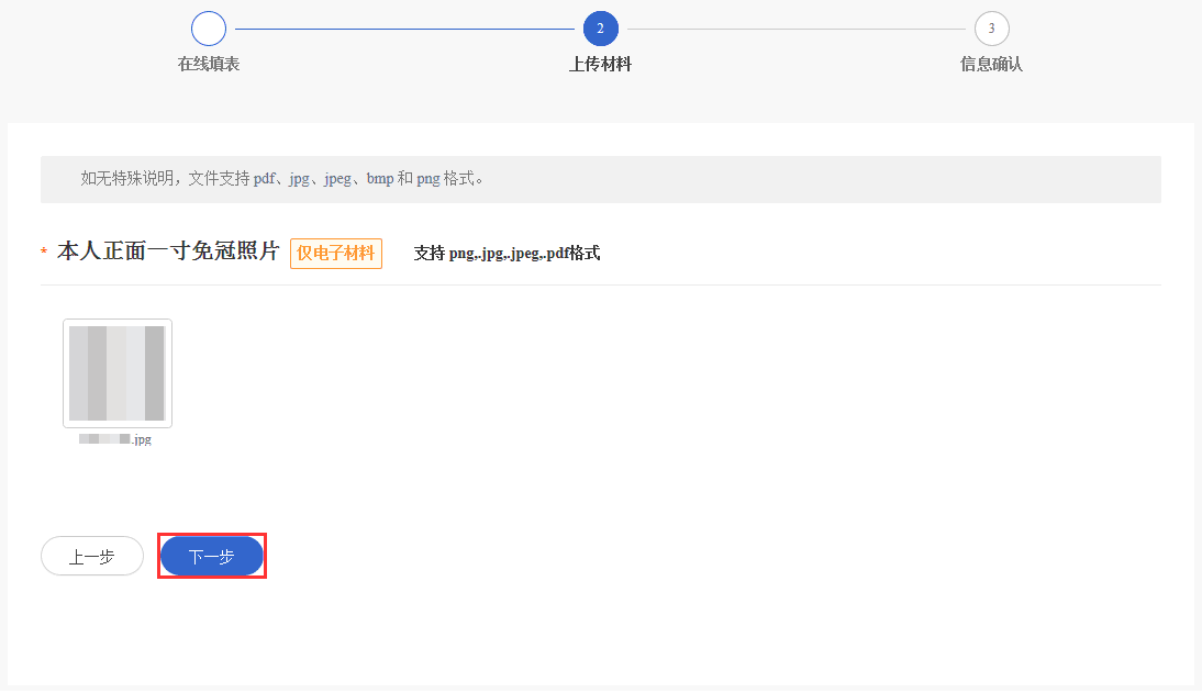 (3)在线填表,上传材料,信息确认,提交。在线填表-相关信息务必填写准确,如转入地、邮箱等;上传材料-照片须近照、标准证件照,信息确认-如发现填错,返回“上一步”修改